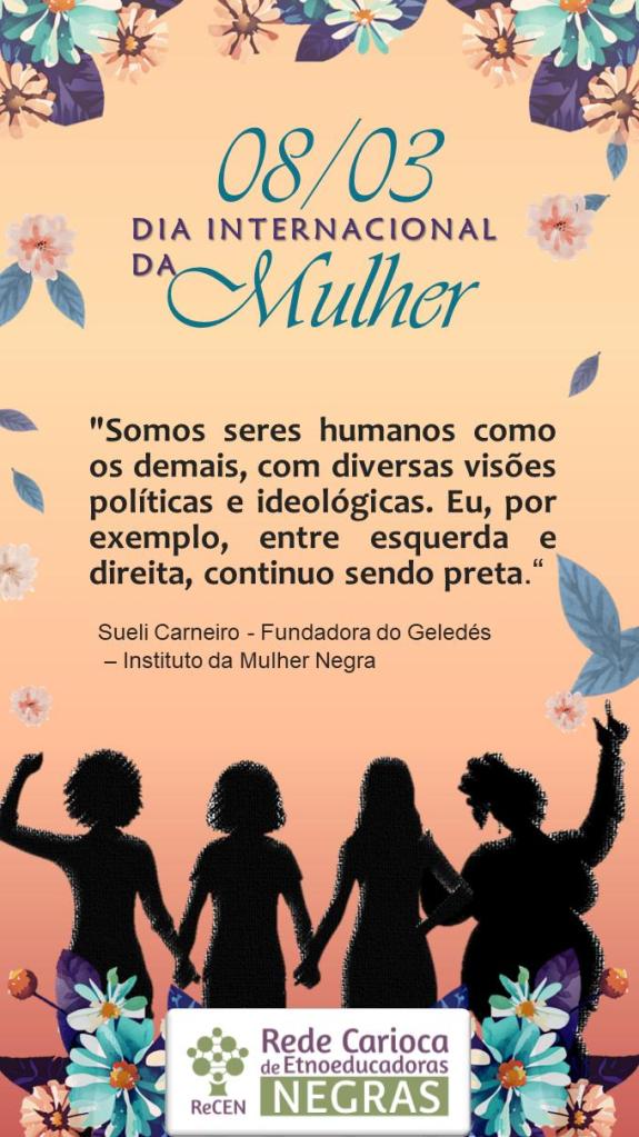 A Rede Carioca de Etnoeducadoras Negras saúda a todas as mulheres que se impõem, com seu modo de ser e estar no mundo, lutam contra a violência e todas as formas de opressão!